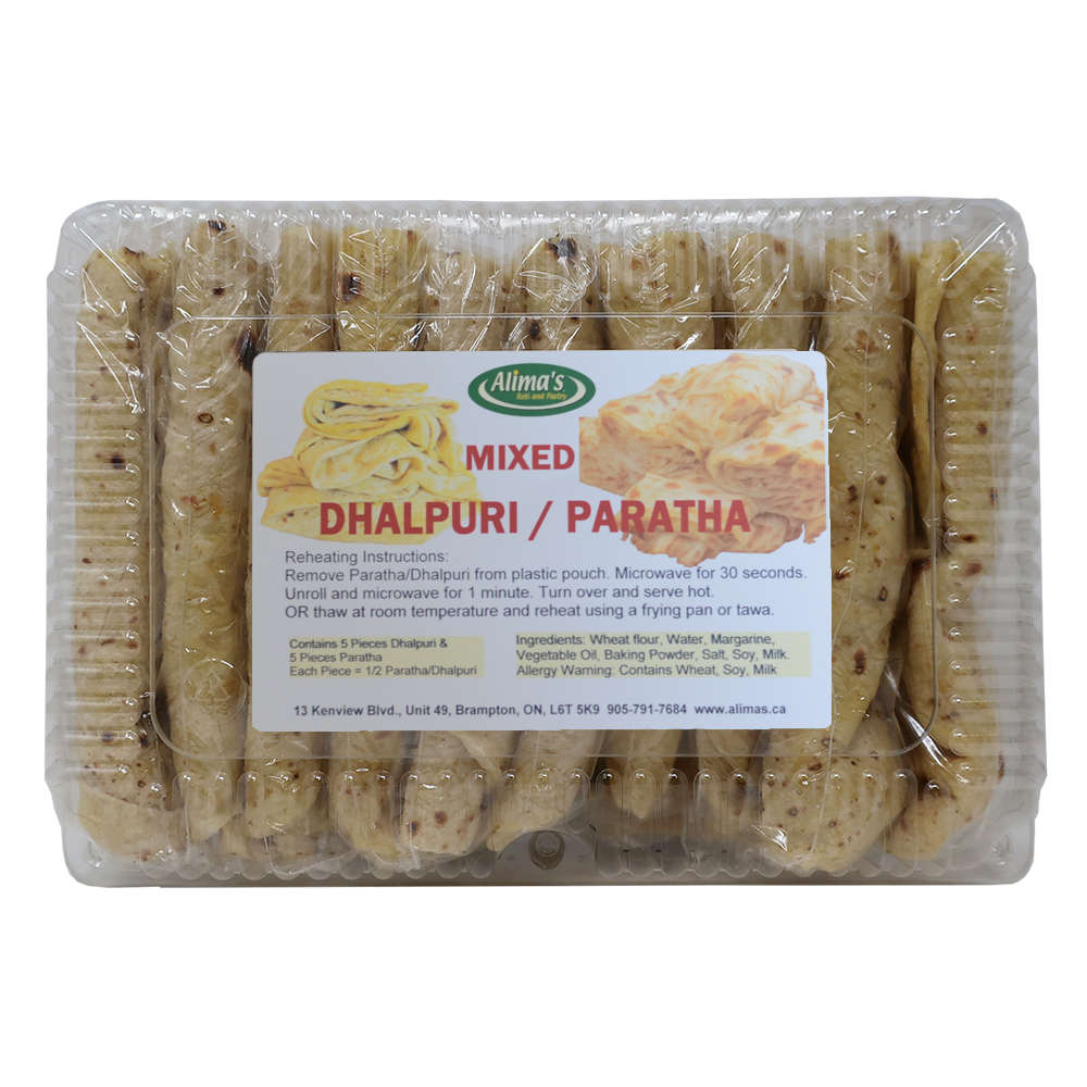 Our Mixed Pack brings you the best of both worlds - the rich, seasoned taste of Dhalpuri and the soft, flaky layers of Paratha.Contains 5 pieces dhalpuri & 5 pieces paratha. Each piece is half of a full-size flatbread.